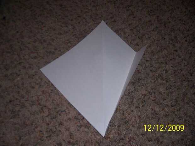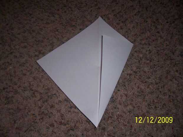 Ahora dobla los bordes inferiores de la plaza en la línea central. Por lo que parece un cometa.