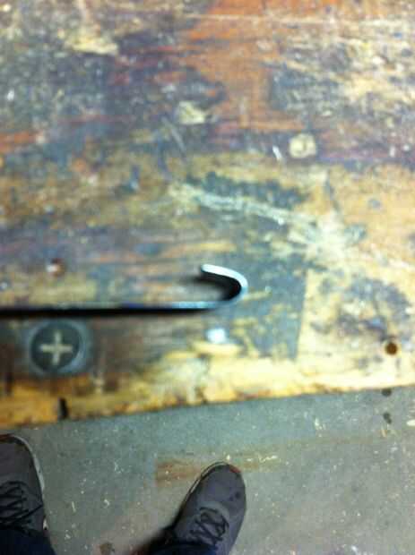 Entonces tienes que tomar una antorcha de gas propano o mapp. Entonces necesitará tomar alicates de punta y bajar de 1/4 de pulgada de un extremo y doblar sobre.