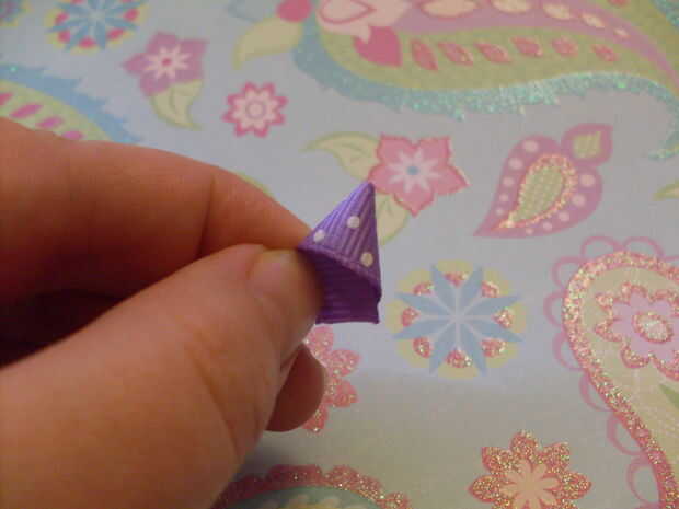 En primer lugar, tomar un 1" pedazo de 3/8" cinta del color de su elección y doblarlo sobre sí mismo y pegar en forma de 'cono'.