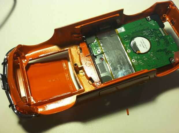 Ahora, con disco duro desnuda, toma la parte metálica del coche y ponerlo boca abajo sobre una mesa. Luego, derriba su lado de la etiqueta de disco duro con puerto usb frente a la parte de atrás del coche y ponerlo en la tina de metal. Intente poner el disco en un ángulo de inclinación hacia abajo de la espalda, para que el puerto es accesible. Recuerde mantener los topes de goma en el disco como se ve en las fotos abajo. Si tienes la más mínima poco de duda, mire las fotos.