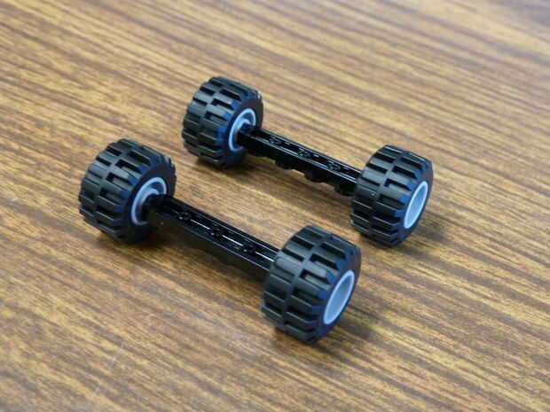 Montar las 4 ruedas a cada una de las piezas de conector de punto negro 4