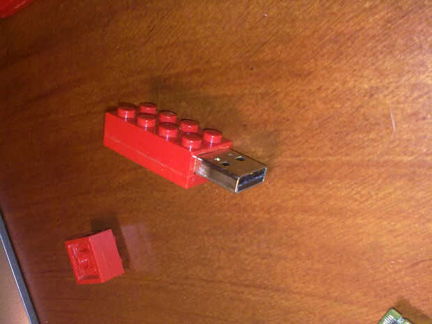 Tienes que lijar para que el ladrillo parece más fino para que sea terminada, el ladrillo de tamaño estándar. Esto le permitirá utilizar su unidad de lego con otros ladrillos, hacer el camino de la unidad de usb más único.