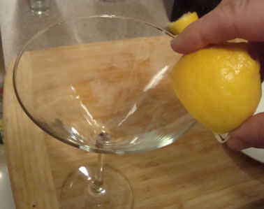 En cambio, rápidamente pero vigorosamente frota el borde con el interior de un limón que he jugo justo antes y luego pegar el vidrio en el plato de azúcar, creando una capa de azúcar fina alrededor de la llanta.