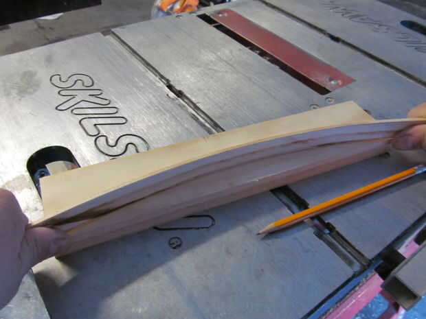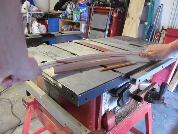 Para añadir carácter a la caja incluye curvas en los barandales superior e inferior. Estas curvas fueron establecidas por doblar un pedazo de madera a los extremos de los rieles. Luego usé un lápiz para marcar la curva. Finalmente corte la curva con una sierra de contornear.