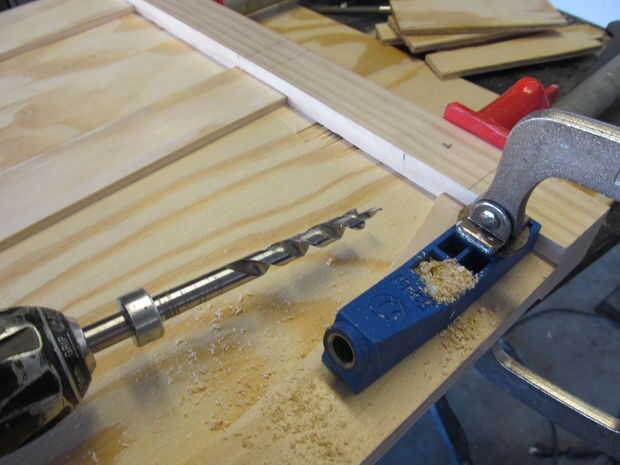 Una vez que se cortaron los rieles, montantes y paneles me uní a ellos con tornillos de bolsillo. Estas articulaciones son fuertes y fáciles de desarmar una vez que estés seguro de que todo encaja. A llenar en los agujeros de ocultación más adelante.