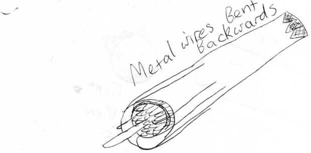 A continuación, doble los alambres de metal hacia atrás y a lo largo de la parte exterior del tubo en diferentes direcciones. Debería verse como la segunda foto.