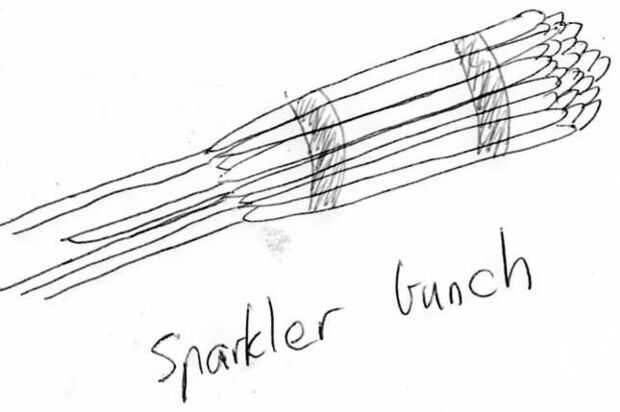 Ahora coloque el manojo de Bengala en el tubo de cartón, para que los cables y espumoso solo están meter el final.