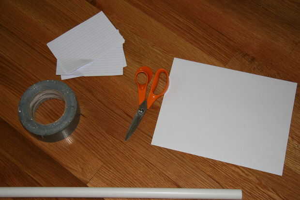 se necesita conducto cinta tijeras un trozo de tubo de pvc de papel (3\4 o 1 pulgada tubo funciona mejor) y un compresor de aire