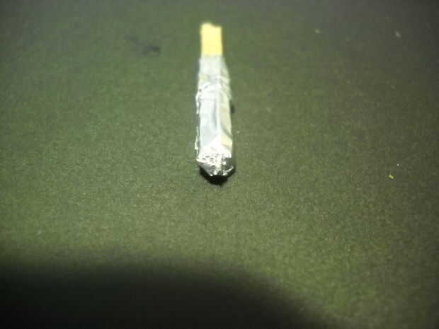 Paso 6: bajar un poco el tallo del partido y pellizque la cabeza de la hoja juntas. Si no haces esto, los gases liberados por el jefe del partido saldrá de la parte superior de la hoja en lugar del orificio de la boquilla por el alfiler.