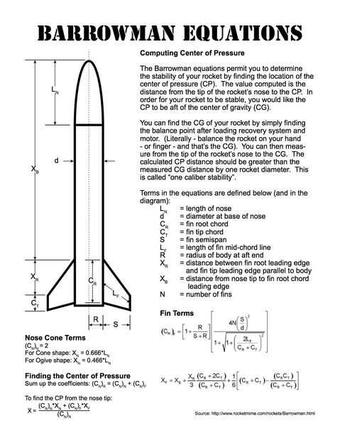 Mientras que el centro de masas se pueden encontrar en el programa Solidworks, se puede encontrar una estimación del centro de presión mediante sus ecuaciones de Barrowman. Desea mantener su centro de presión (CoP) por debajo de su centro de masa (CoM). Usted puede investigar cuánto por debajo es óptima. Si bien leí que es mejor mantener la CP entre 1 x y 2 x su diámetro del cohete a continuación, puede encontrar más o menos a ser beneficioso.
