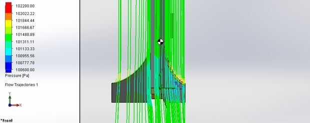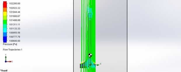 Una vez que han animado la simulación del flujo, modificar la escala en el lado izquierdo quitando valores que no pueden verse. Máximo y mínimo obtendrá más cerca juntos hasta que pueda ver cambios en el cuerpo de su cohete. Visualizar el modelo, los cambios de color indican cambios en la presión del aire que pasa sobre el cohete. Haciendo caso omiso de los cambios de presión alrededor de las aletas, el cambio de presión ubicado hacia la parte inferior de tu cohete es el centro de presión. Como se ve en la foto, mi centro de presión se encuentra por debajo de mi centro de masa. Si éstos son cambiados que necesita alterar su cohete.