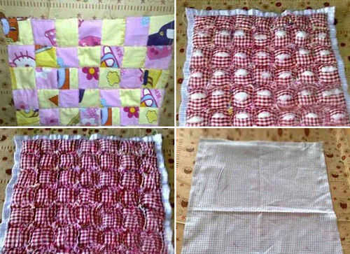 2. coser una tela pequeña a la Plaza; corte pequeña abertura en cada lado B; cosas acolchado interior para que sea bombeado.