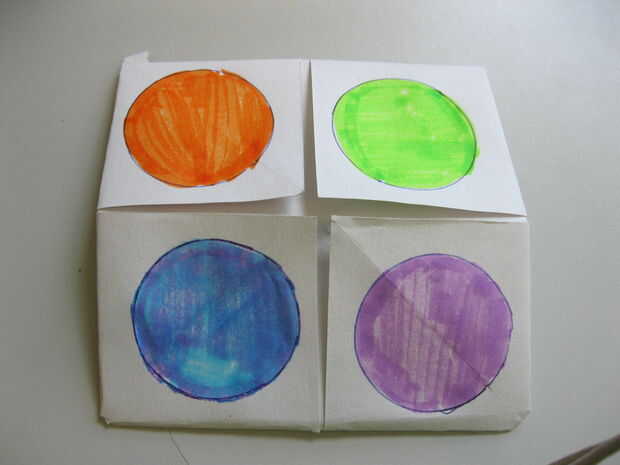 En segundo lugar-- Color de cada círculo con los cuatro colores que ha elegido. (Había elegido usar naranja, azul, púrpura y verde).