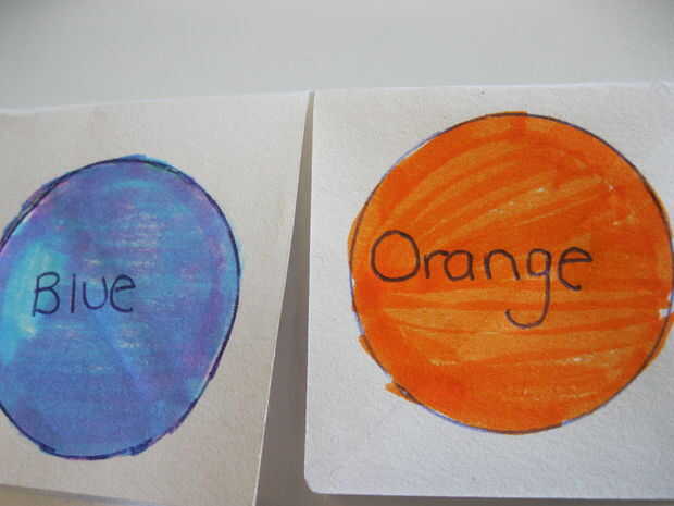 En tercer lugar-- Escriba el nombre del color dentro del círculo de color correcto