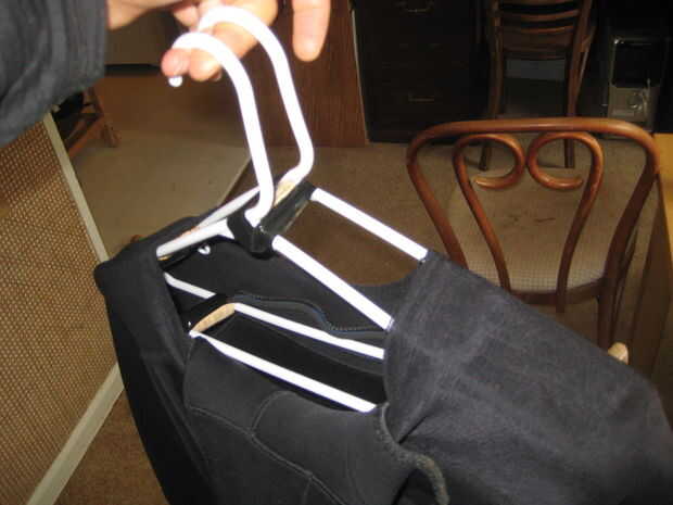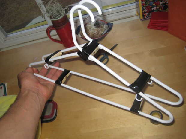 Se unen las dos perchas! Esto podría tener cierta delicadeza con la cinta aislante, pero usted puede hacerlo!