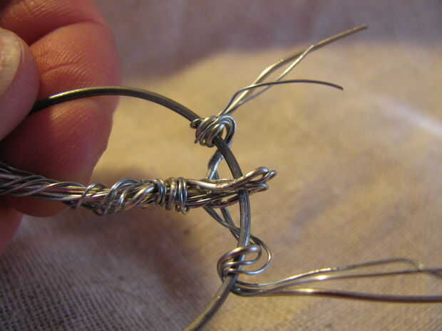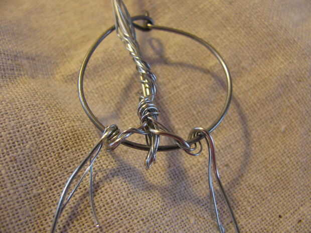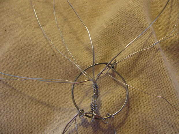 Agregado sus raíces a la parte inferior de la pieza del círculo doblando el alambre alrededor del círculo, cortar el exceso y asegúrese de que los extremos queden al ras con el círculo.