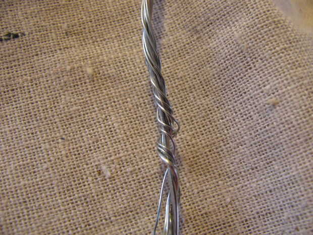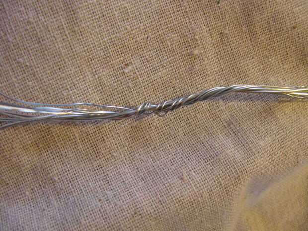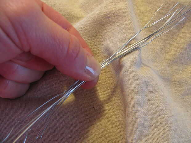 Tomar todas las tiras de alambre y tuerza en una sección pequeña en el medio.
