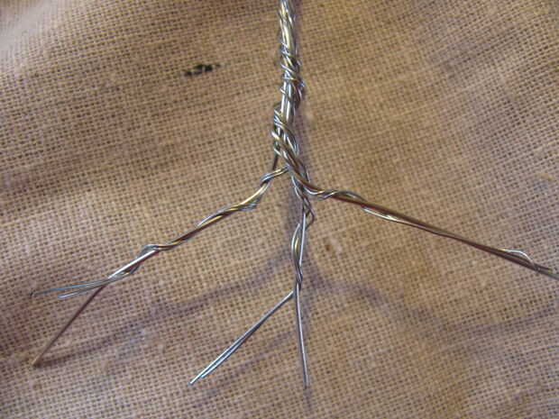 Elija uno de los extremos a la parte inferior del árbol y separe el cable en 3 grupos para que las raíces y luego separar todas las piezas de alambre en la parte superior.