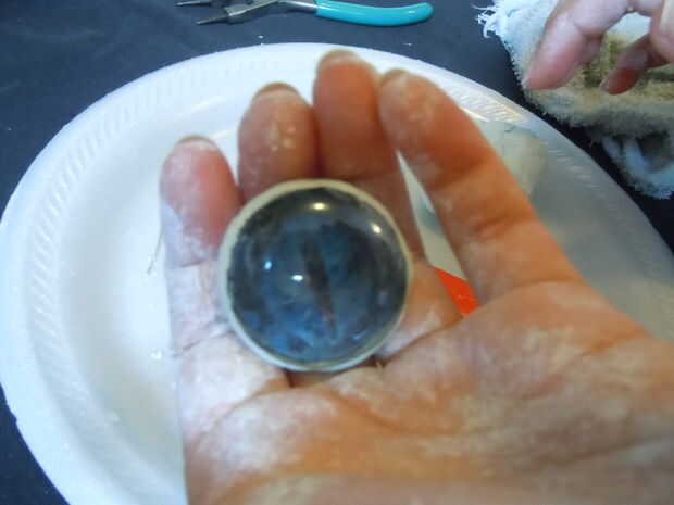 Está bien conseguir arcilla en el cabujón porque se limpie con agua. Simplemente Moje un hisopo de algodón y limpie la arcilla lejos. :)