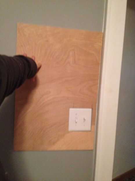 Corte un trozo de madera (. 25" espesor y tamaño que desee). O corte en las tomas de corriente. Aviso: tenga cuidado con sierras u otros objetos puntiagudos.