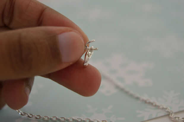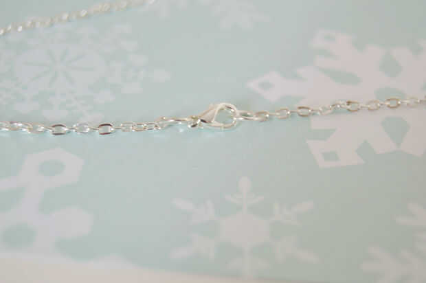 Una vez que el pegamento esté seco, coloque un anillo de saltar a la parte superior de la botonera y pasar a través de la cadena del collar. Fije el anillo de un salto de un lado y otra con broche de langosta en el otro lado para completar el collar.