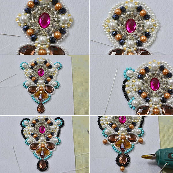 4, arma de pegamento uso para agregar 3 perlas redondeos naranja (como se muestra en la imagen).