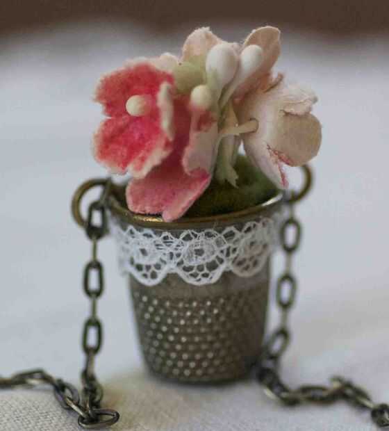 Coloque un poco de pegamento dentro del dedal, inserte su flor y empújela hacia abajo un poco para que encaje correctamente.Se hace el bonito collar! Usar y disfrutar. Estos van a hacer tantas grandes regalos para mis amigos mañosos!