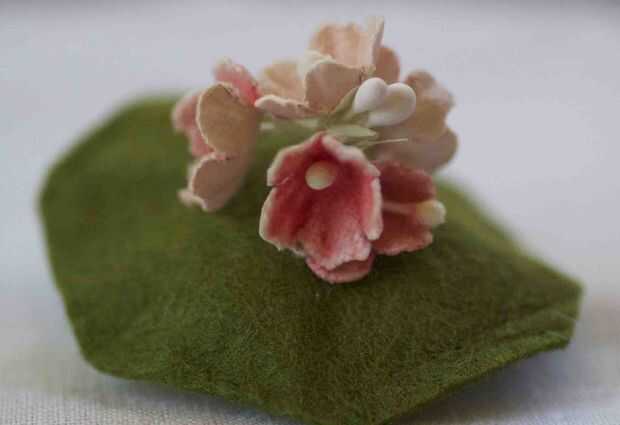 Primero cortar el fieltro en forma de círculo y un pequeño recorte para las flores e introducir en el agujero.