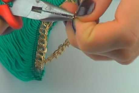 Sujete el broche a la cadena con un anillo de "O". Un anillo de "O" es solo eso Círculo metal llano que es fácil de doblar. Esto será más fácil con los alicates de nariz de aguja, pero anillos doblan muy fácilmente, así que usted puede manejar con los dedos y algún grano si necesita ser.