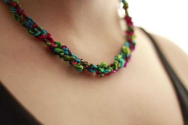 la semana pasada, la mamá de mi novio vino a visitar y ella me enseñó a hacer estas cool collares de ganchillo. Incluso me dio un hilo y una tonelada de granos para hacer mi propio! Así que aquí estoy, ahora en mi collar de cuarta, y pensé que compartir el tutorial con ustedes! Básicamente, usted será tejer tres hebras de hilo de ganchillo con cuentas en ellos y luego les trenza juntos. ¿Listo para el tutorial completo? Bien, vamos allá.