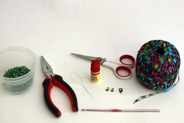 Tendrá granos (utilicé verde claro y oscuro), pinzas, una herramienta de rebordear, un gancho de crochet de tamaño G, pegamento, tijeras, dos ganchos de langosta, un clip y algunas escalera crochet hilo. (También puede usar diferentes tipos de hilo/hilo de ganchillo, como las cuentas cabrá!)