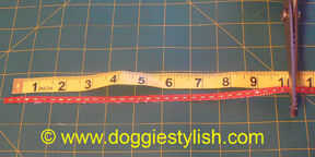 Jersey es un perro de tamaño medio, quería una buena cantidad de cinta para colgar del collar. Diez pulgadas fue lo que decidí. Un collar de perros más pequeñas probablemente estará bien con cinco pulgadas. Corte la cinta usted tiene y colocarlo en pilas si tiene colores diferentes de cinta.