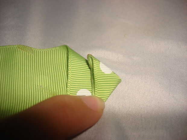 Para iniciar tu rosa, tomar un extremo de la cinta y doble hacia abajo (a la izquierda) por lo que forma un triángulo rectángulo. Luego tomar el la punta y el pliegue que a mitad de su primer doblez, rollo hasta que haya cerca de 1 cm de la primera doble izquierda. Doble espalda y rodar una vez que su seguro. ** Consejo: Si pegue ligeramente sus primeros dos pliegues, no desentrañar en usted más tarde!