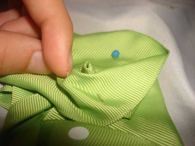 izquierda de 1 pulgada. En la parte posterior de la rosa, ves un rodado hasta la punta. Tomar la cinta sobrante y