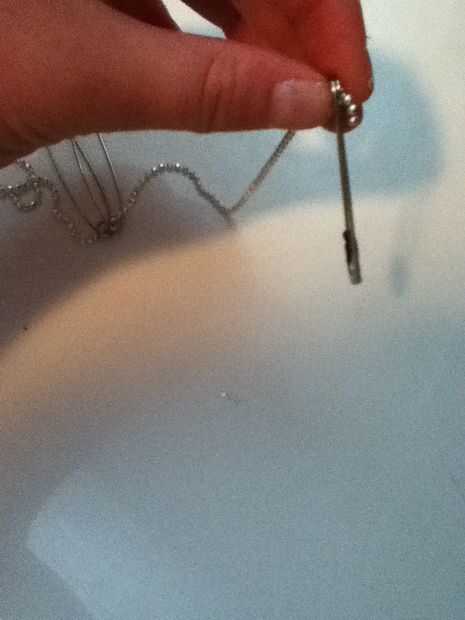 Inicio a todos sus pernos de seguridad en su cadena o elástico. Enrósquelas a través del pequeño orificio en la parte inferior y no el espacio más grande. Continúe este paso hasta que termine. Y ahí lo tienen! Tu propio collar único imperdible!