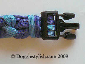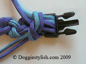 Tomar dos cables de diferentes colores, ejecutar luego alrededor del frente y por la parte superior del lazo que ha creado en la parte posterior del cuello. La segunda imagen es la apariencia de la parte delantera del collar