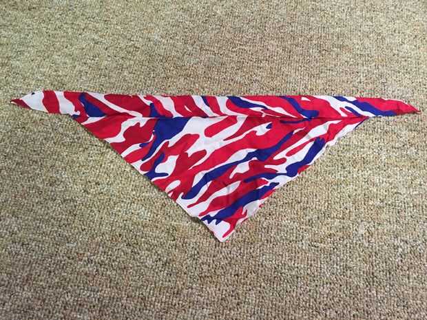 Para preparar el pañuelo, usted tendrá que cortar por la mitad (por lo que es un triángulo). Gire el pañuelo para que la punta del triángulo apunte hacia usted. Entonces usted necesitará doblar hacia abajo sobre una o dos pulgadas desde la parte superior (lado derecho).