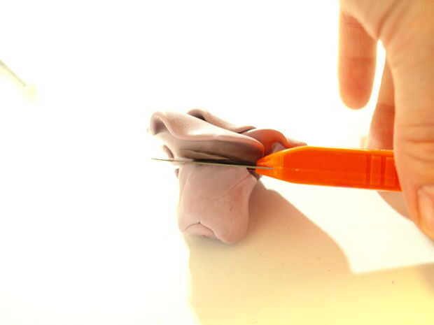 10. ¿Qué opinas? No se sorprenderá de lo fácil era! Ahora saca su navaja o cuchillo y tallar suavemente fuera de la arcilla "tallo" que está sosteniendo a. Intento hacer mis rosas bastante plana en la parte posterior para que no demasiado voluminosas en el collar y tienen menos tendencia a voltear alrededor mientras que lo usa.