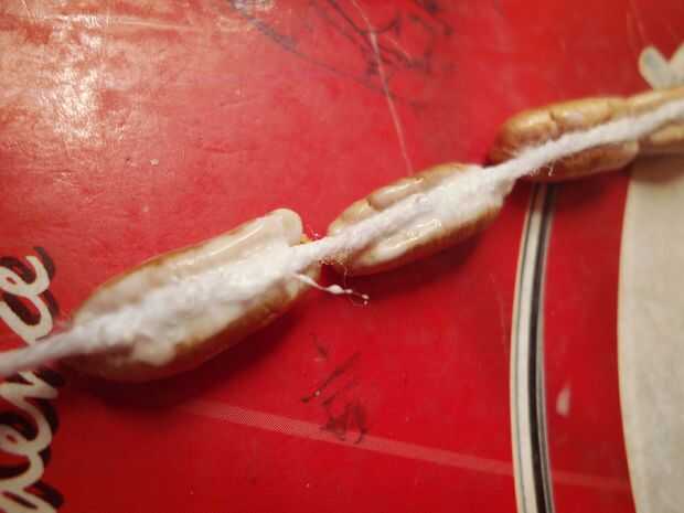 Paso 3: Pegar las semillas al hilo con la ayuda de pegamento.