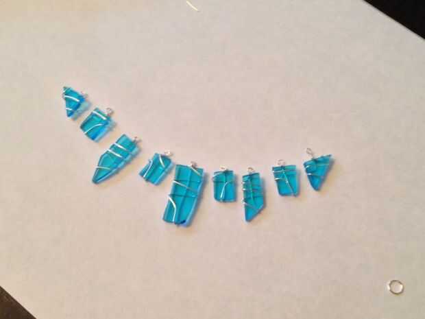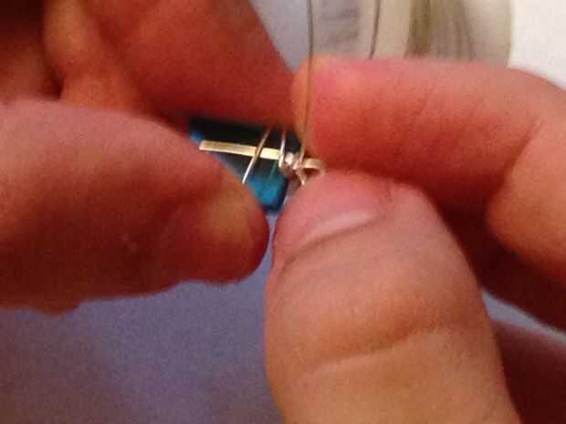 Envolver el resto del alambre de plata alrededor del bucle original, en cuanto a terminar el cableado y crear una final estable la jaula para el pedazo de vidrio en. Repita para todas las piezas!