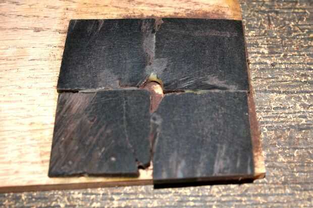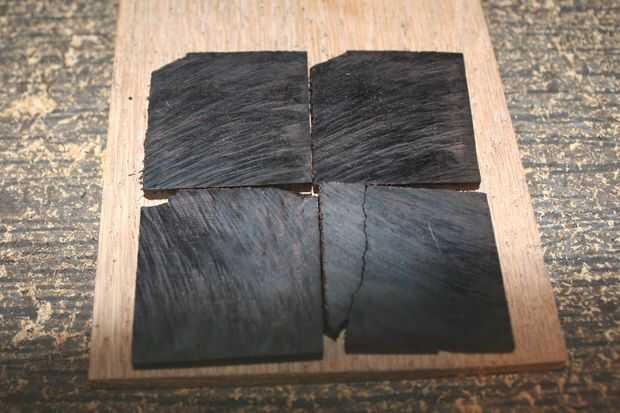 Primero corte aproximadamente 1/8" de la Blackwood usando una sierra. Lo hice 4 veces darme 4 plazas. Una de mis plazas realmente se rompió, ya que voy a estar pegado todo abajo de todos modos yo no preocuparse demasiado por él.