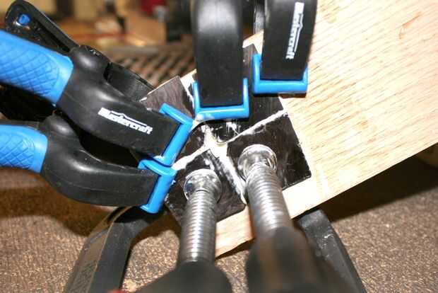 Utilicé mi cola para madera para pegar todo, y entonces sujeta. Limpiar el exceso de pegamento con una toalla de papel húmedo y se deja sentarse.