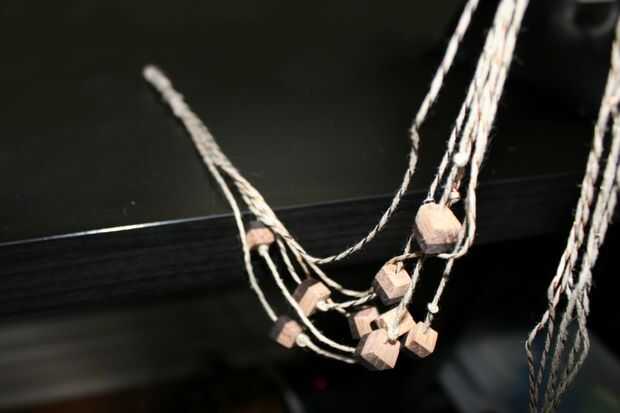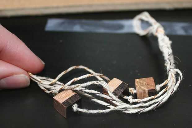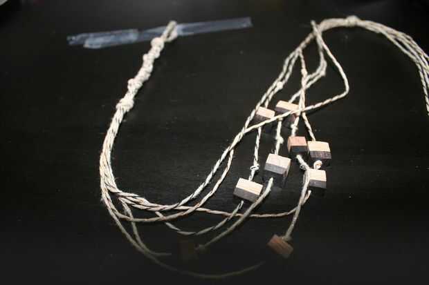 Mi efecto deseado era que un montón de cuerdas colgantes sueltos con algunos de los granos espaciados. Tengo granos en 4 de las 6 cuerdas.