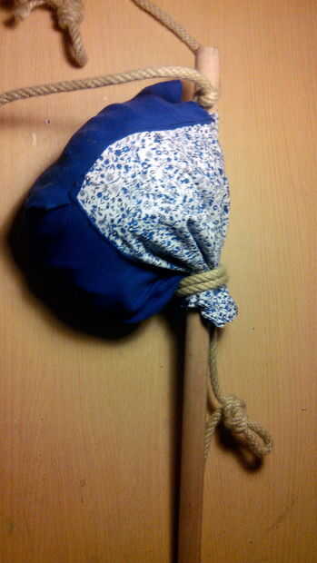 - Coloque la cuerda (para colgar el columpio en el árbol) en el bolsillo.