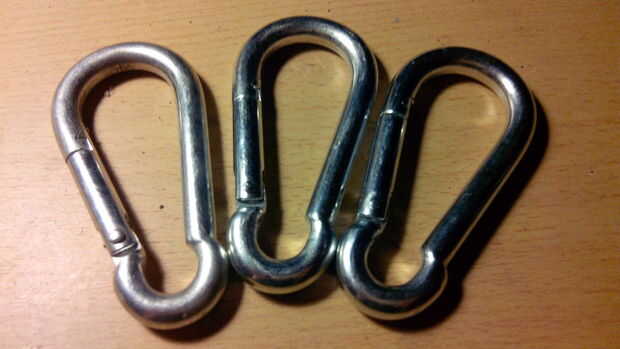 • Para mantener todo unido utilizo 3 mosquetones (cuadro 4). Estos deben ser capaces de soportar su peso así que prestar atención a las especificaciones cuando usted los compra.