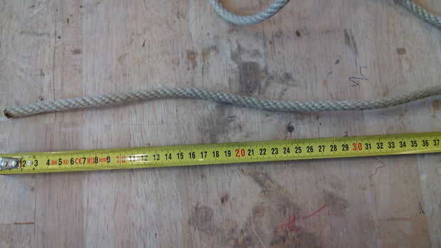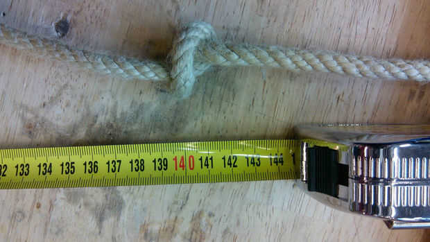 Así que si sigues mis distancias necesita medir y cortar 350cm de cuerda.