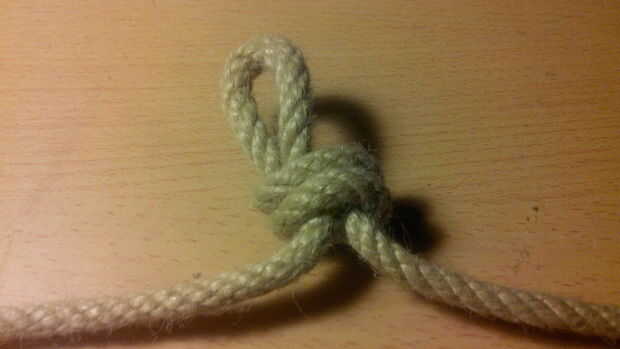 - Doble la cuerda por la mitad y atar un lazo exactamente en el centro de la cuerda (Figura 4)