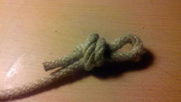 - Ahora necesita atar un lazo en cada extremo de la cuerda (Foto 9) donde se montarán los mosquetones.