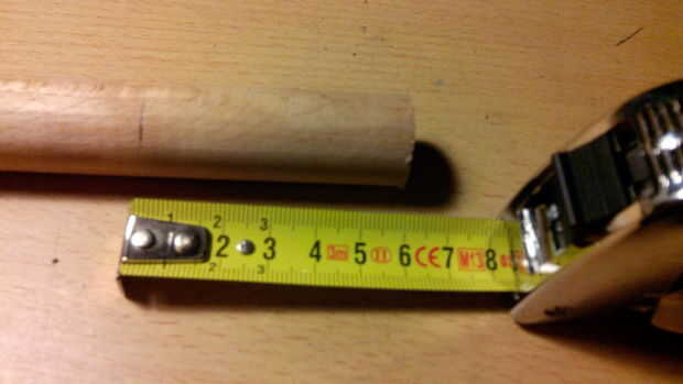 1. Miden 6 cm de palo y lo corte (cuadros 1 y 2).