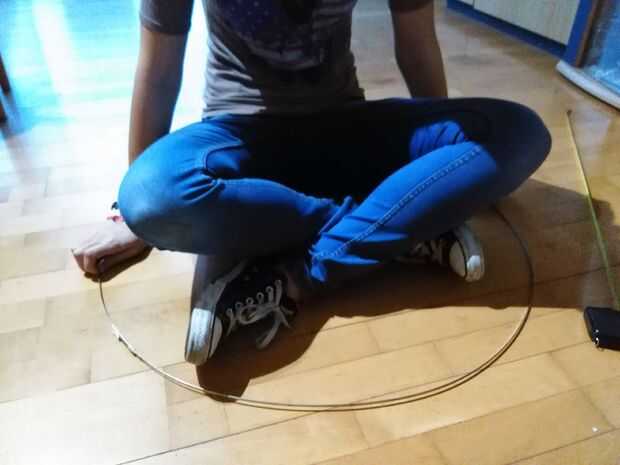 Pone el GrooveThree en un círculo del diámetro deseado (cuadro 3). Medir el diámetro (cuadro 4). Mina fue de 74cm así que voy a trabajar con esa distancia. Puede hacer mucho más pequeñas si quieres. Como se puede ver en las fotos siguiente la oscilación es muy grande.